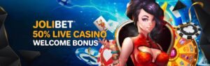 Players should explore the fun world of live casino games at Jolibet and get a 50% welcome bonus.